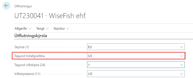 Bráðgabirgðatollafgreislur þurfa að vera mektar U3 í reitnum Tegund tollafgreiðslu