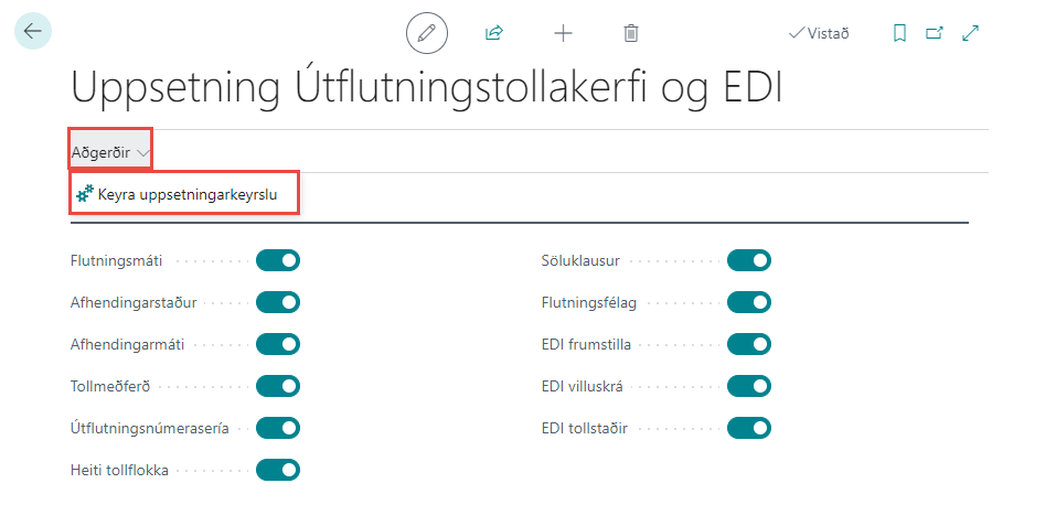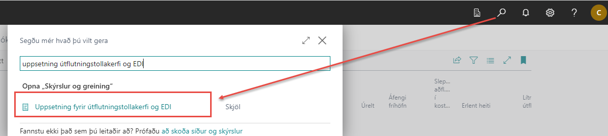 Til þess að opna álfinn er farið í Uppsetning útflutningstollakerfi og EDI.