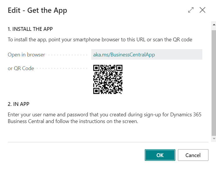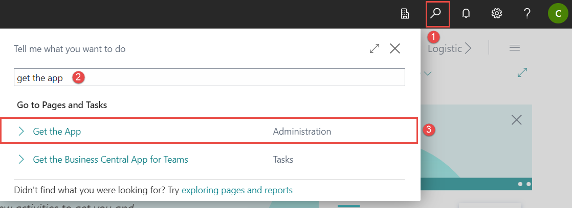 If users are interested in having the Business Central app installed on their device, they can download the Business Central app here or through the client itself by going to the search and writing Get the app.
