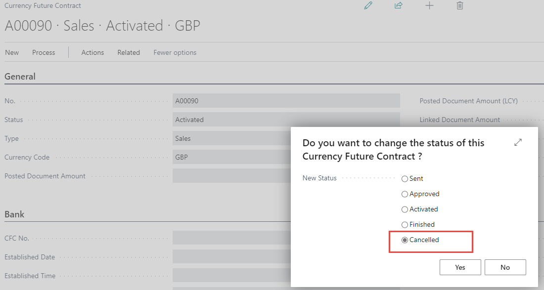 Click on Yes. After the status has been changed to canceled, the status cannot be reversed.