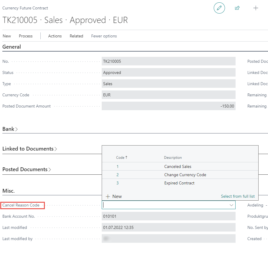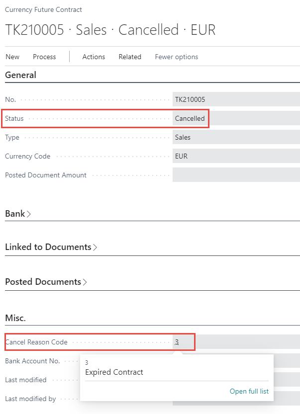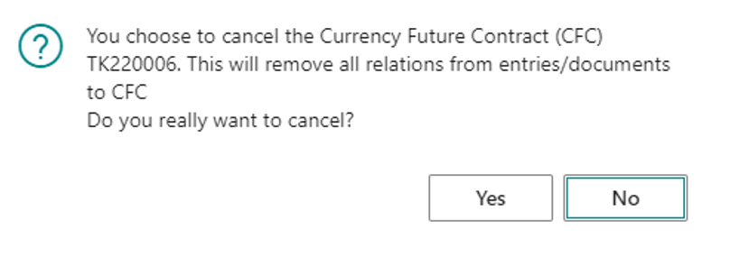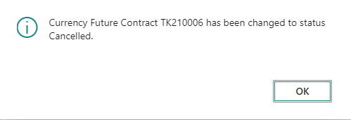 It may be necessary to cancel a contract due to various errors,reasons or overdue contracts. By doing this, all instances of the futures contract on invoices (not posted or posted) and entries (customer/vendor ledger entries) will be removed. This can not be reversed.