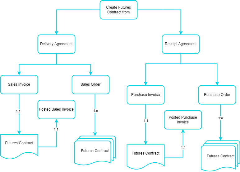 Below is a flow chart that explains the process flow of creating a futures contract from a sales document.