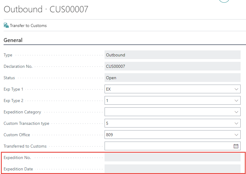 The associated Expedition No. can be viewed in the header of the Declaration along with the Expedition Date.