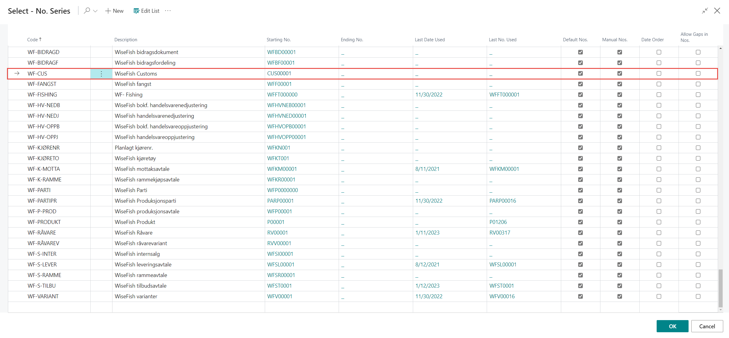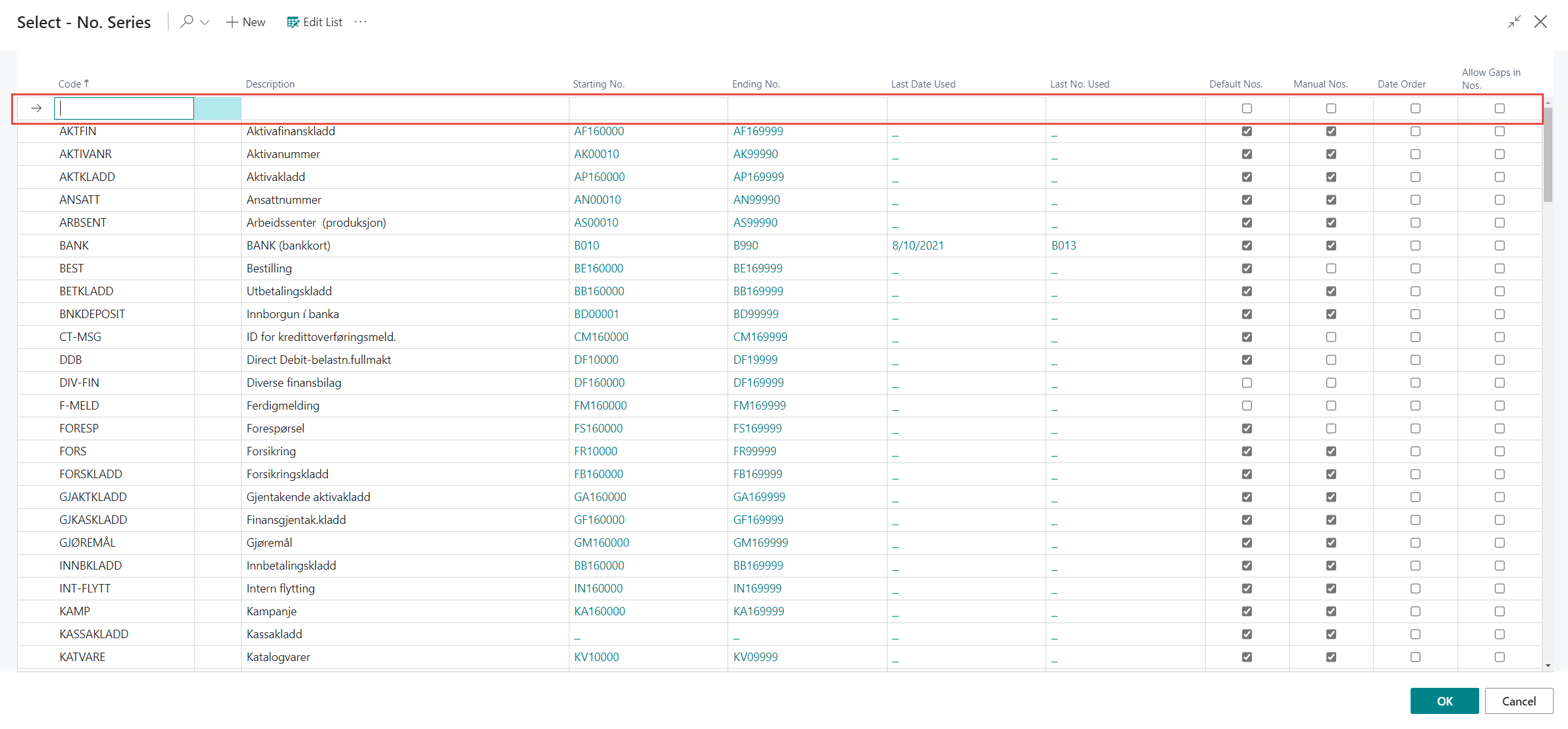 The No. Series is then ready and the user clicks OK.