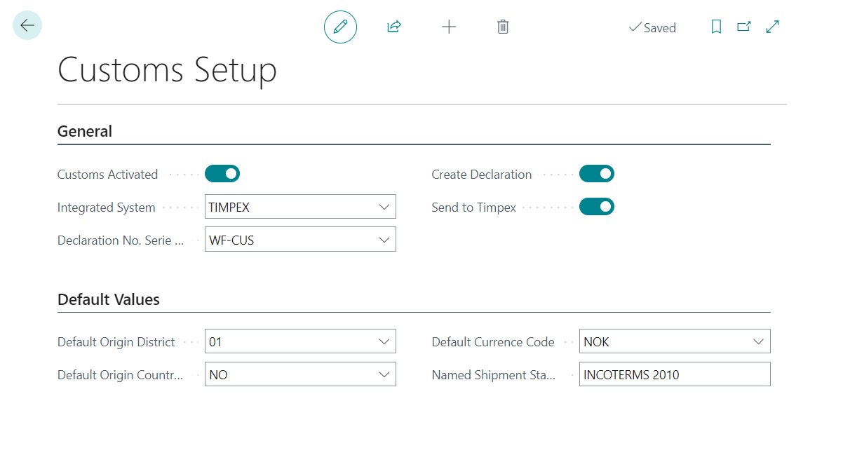 It is possible to set some Default Values. These Default Values will appear as default on all of the customs documents.