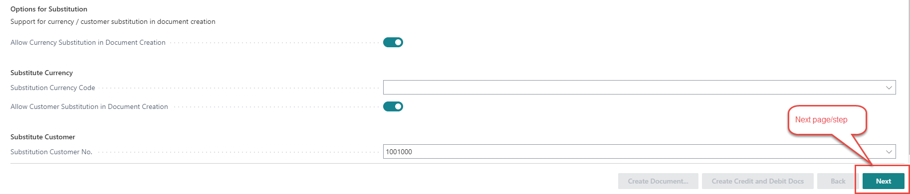 If the user wishes to change currency or customer/vendor he only needs to fill out the first page of the wizard and check the box with either the currency or customer/vendor option and select which currency or customer/vendor he wishes to substitute. Then he simply selects the option „Create Credit & Debit Documents in a Single Step on Selected Substitutions Options“ and the wizard then creates an invoice and a credit memo, which the user can check and then post if everything is alright.