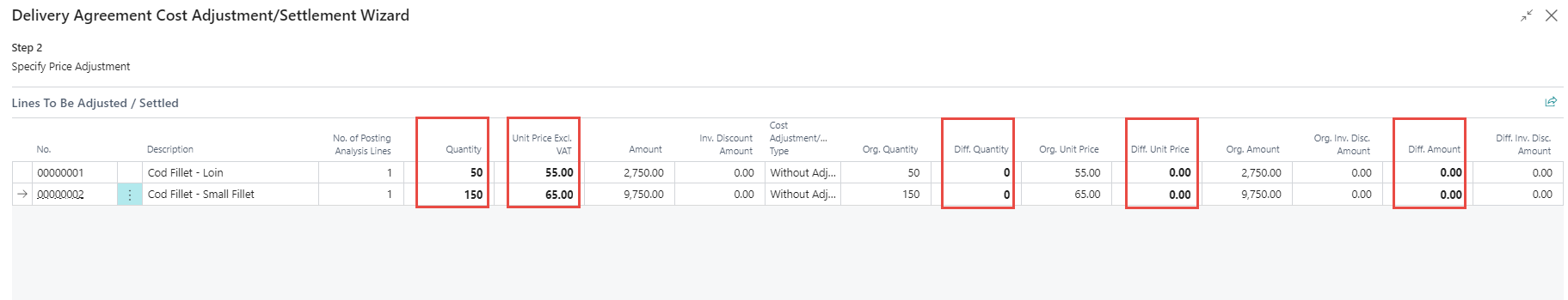 There are 5 fields that can be changed in this form: Quantity, Unit price excl. VAT, Diff. Quantity, Diff. Unit Price and Diff.