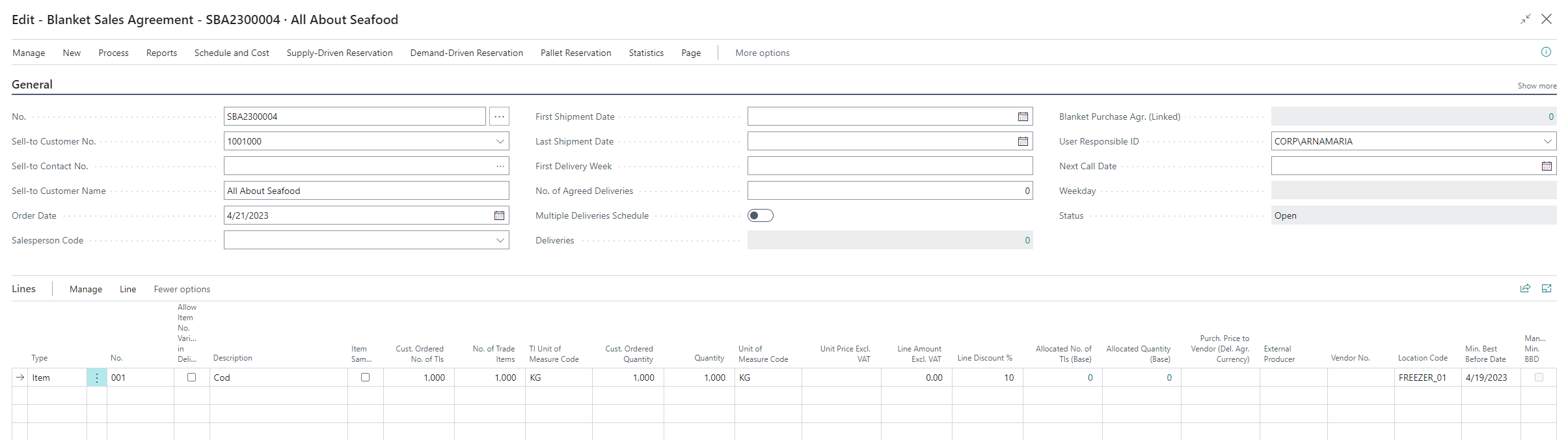To create a Blanket Sales Agreement click General > Create Agreement.