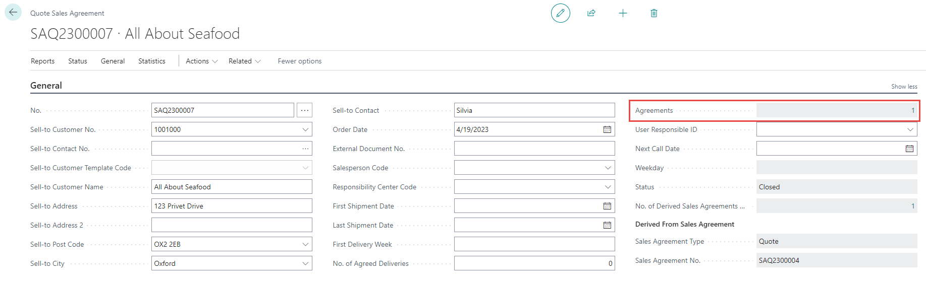 The new Blanket Agreement then opens up and the status of the Quote Agreement becomes closed.