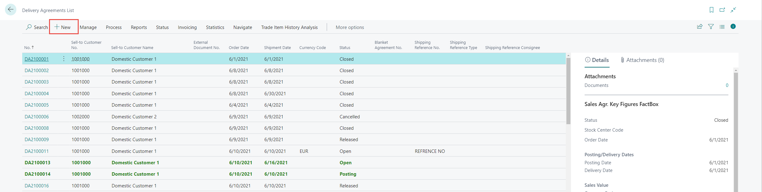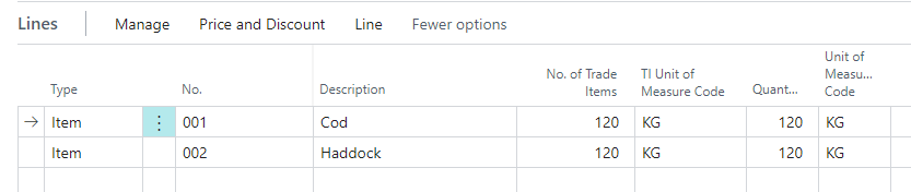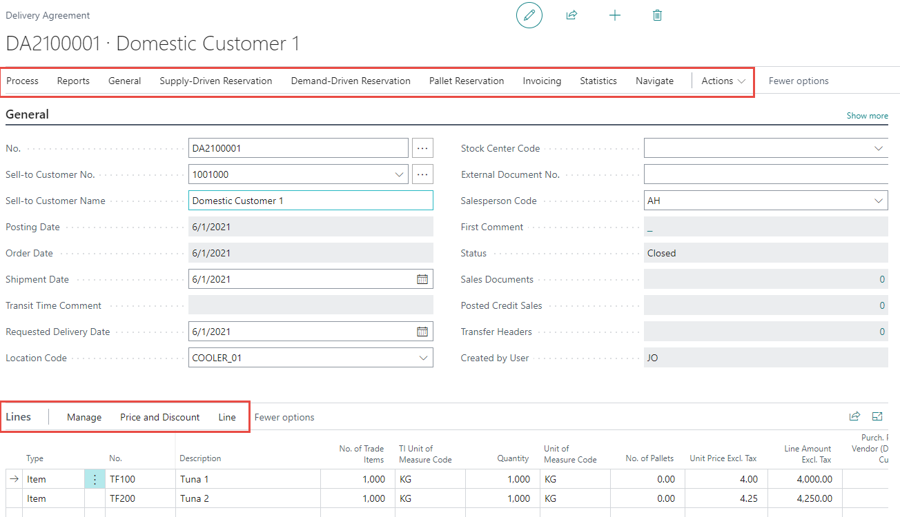 Information about the products (Trade Items) that are being sold are listed here. The Delivery Agreement lines can have different statuses depending on the stage of the Delivery.