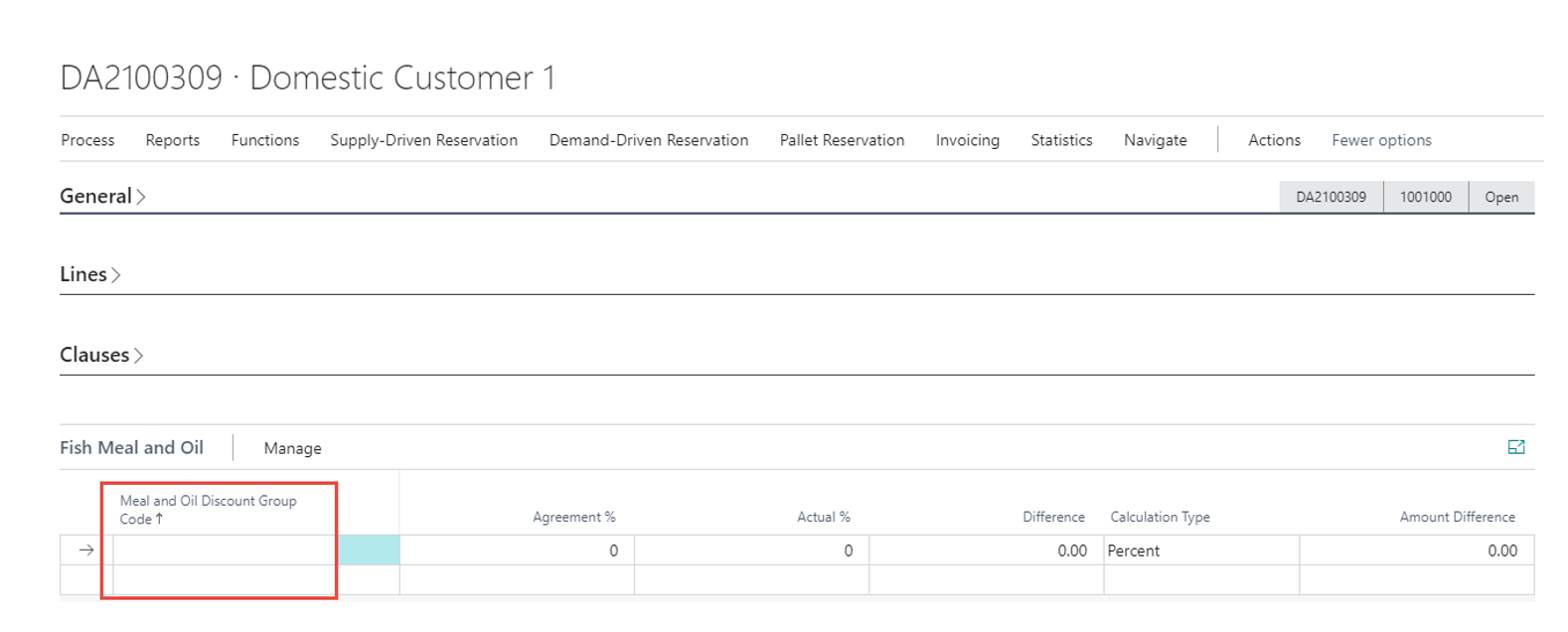 In the Fish Meal and Oil tab, first select a Meal and Oil Discount Group Code. If one does not exist then it must be created.