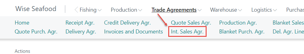 The Internal Sales Agreement List can be found on the navigation menu under Trade Agreements > Int. Sales Agr.