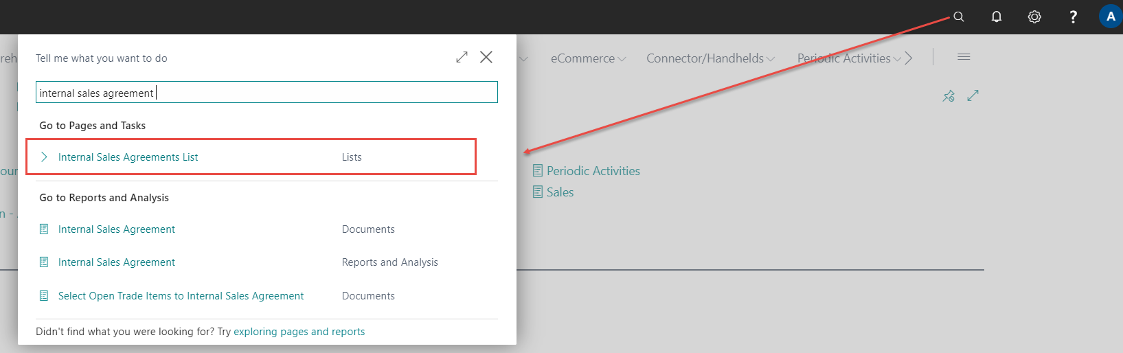 Or by going to the search bar and typing in Internal Sales Agreement.