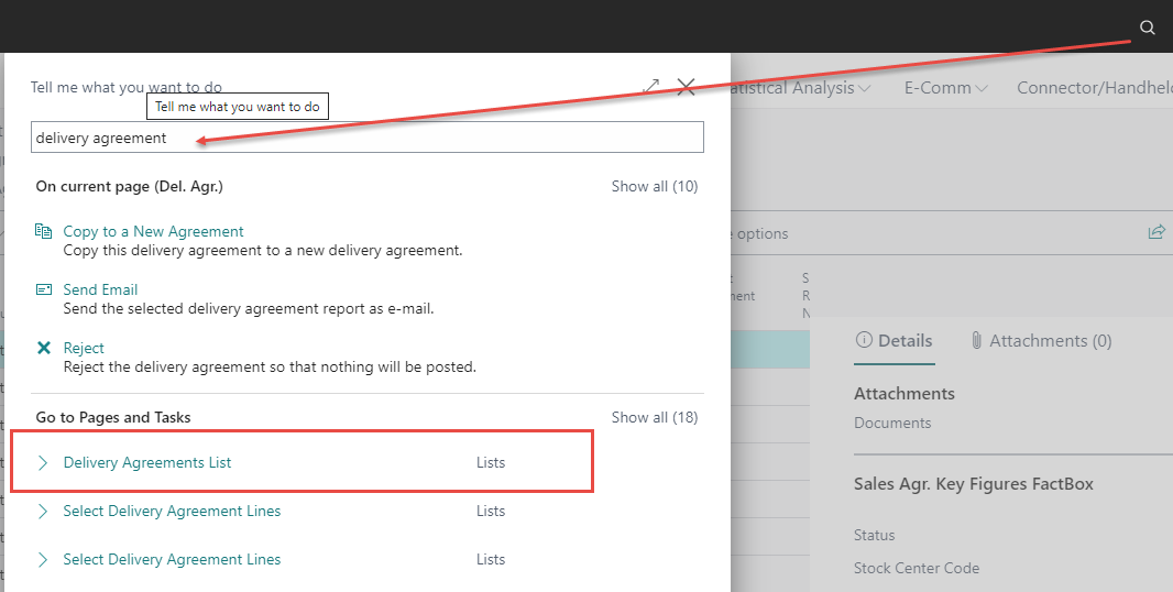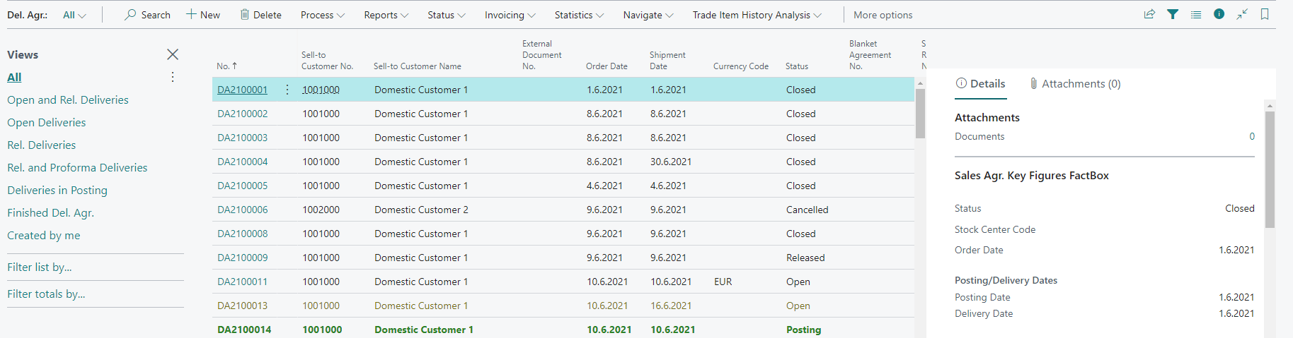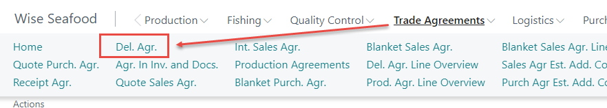 The Delivery Agreement List can be found on the navigation menu under Trade Agreements > Delivery Agr.