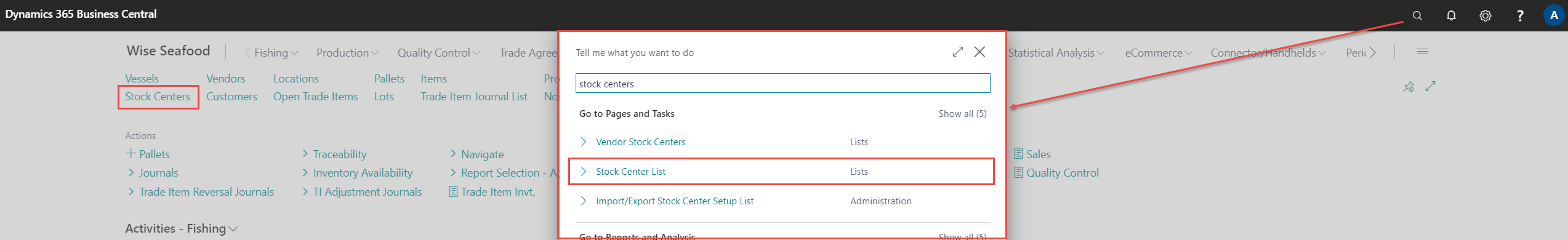 Stock Centers need to be defined prior to using Internal Sales Agreements. Producers are set up as Stock Centers in Business Central. The Stock Centers can be found on the Navigation bar or by searching for Stock Center List in the search window.