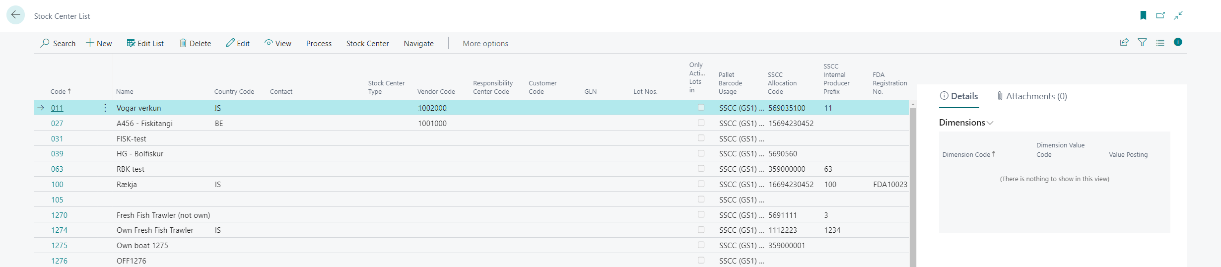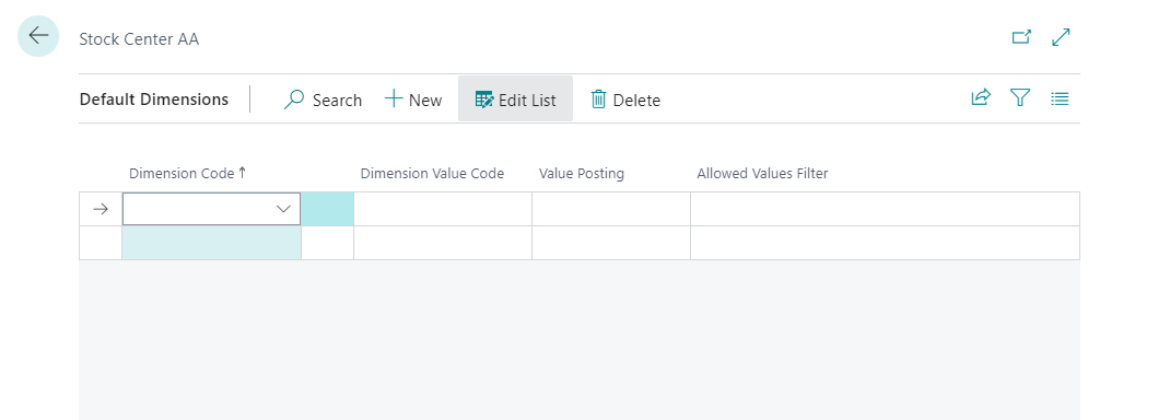 Click +New to set up the dimension code and dimensions values for that Stock Center.