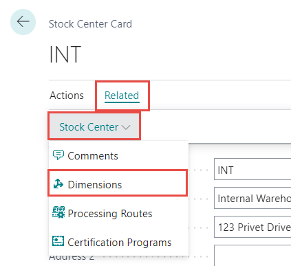 To view more information on Dimensions, click here. To set up the dimensions for the stock center, click Related > Stock Center > Dimensions.