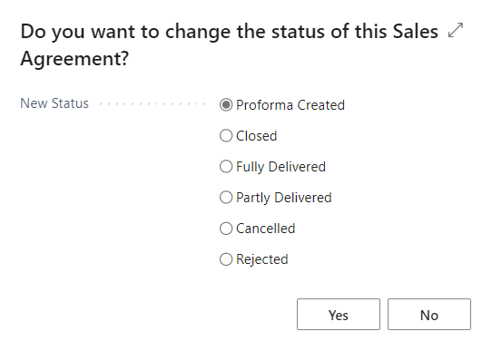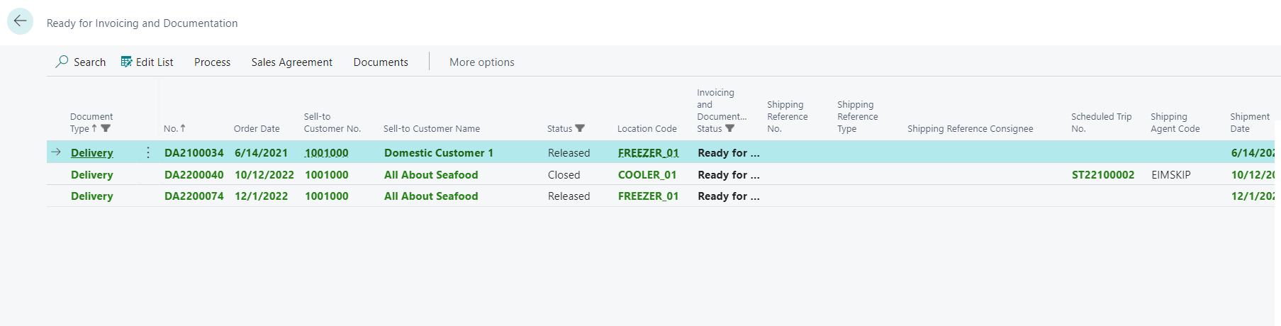 The Delivery Agreement includes an additional status option: Invoicing and Documentation status. This can be used to further categorize the Agreements. In some cases, one user creates and completes the Delivery Agreement, while another user generates the posting document.