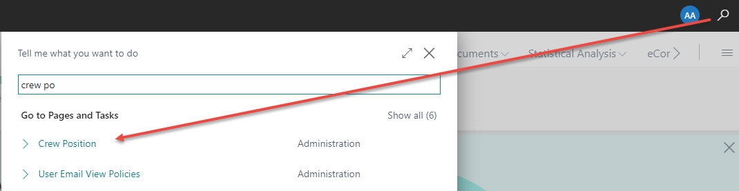 Search for Crew Position or or click on Crew Position in the Navigation bar of the Role Center.