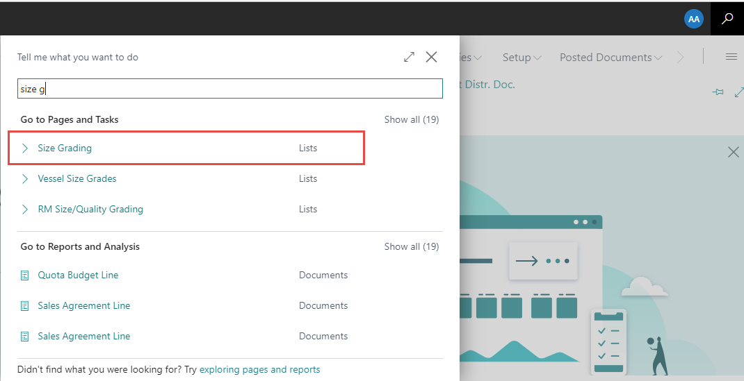 To look up and create Size Grading in WiseFish search for Size Grading.