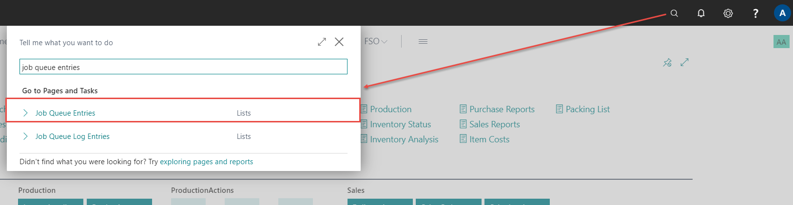 This functionality is only for those using DNB. Files are usually sent automatically with the help of a job queue. To find the Job Queue Entries, search for it in the search window and select the option from the list.