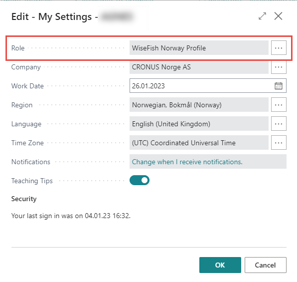 To get started, set the role to WiseFish Norway Profile. Go to the settings icon and click on My Settings.