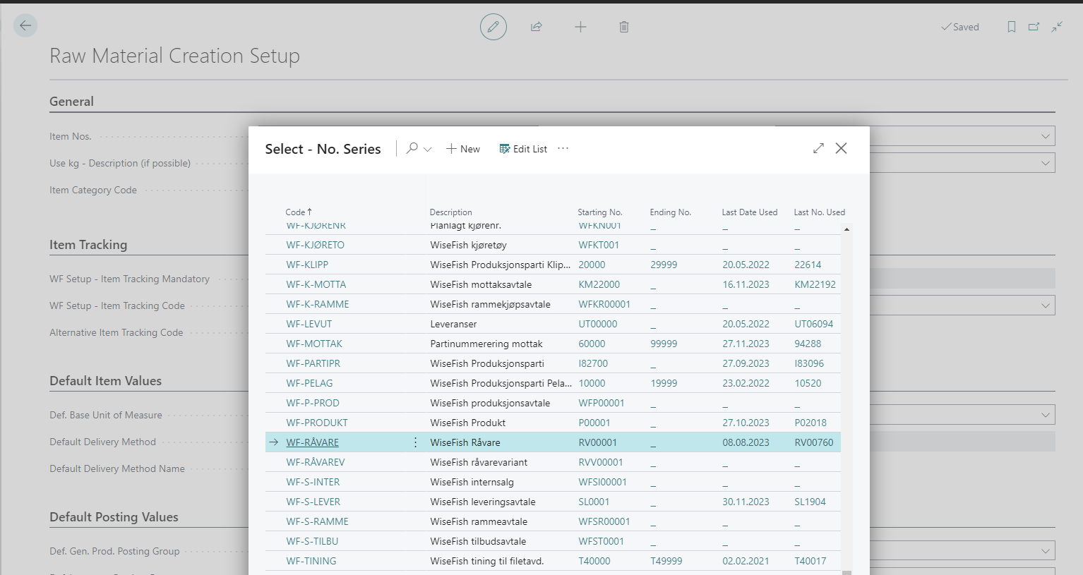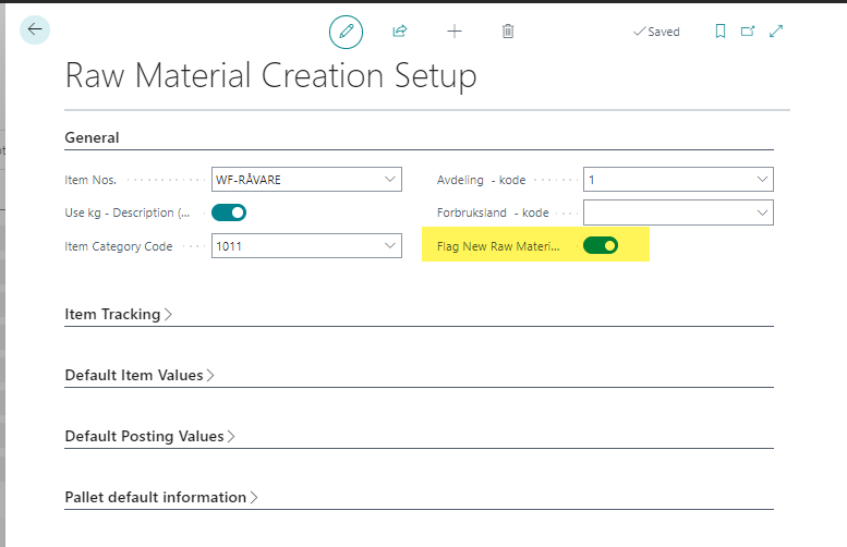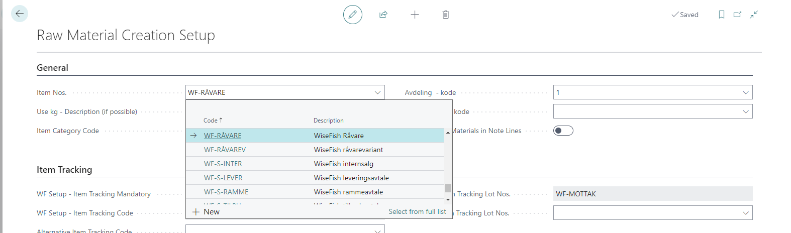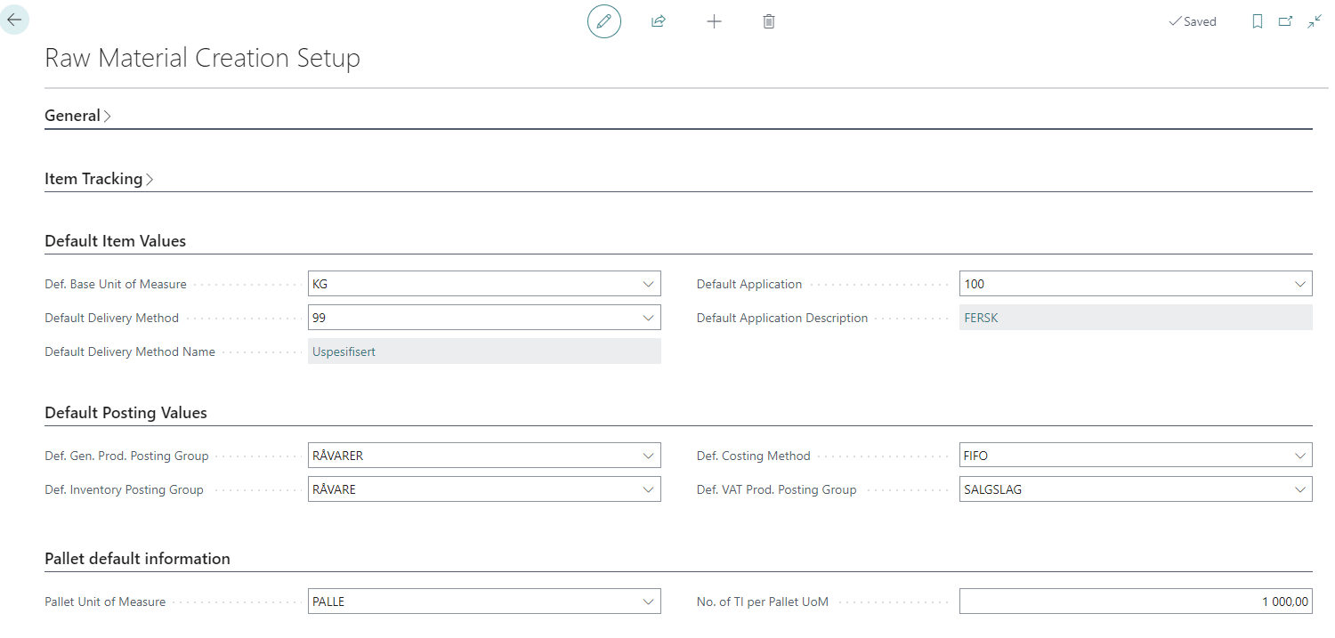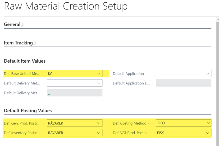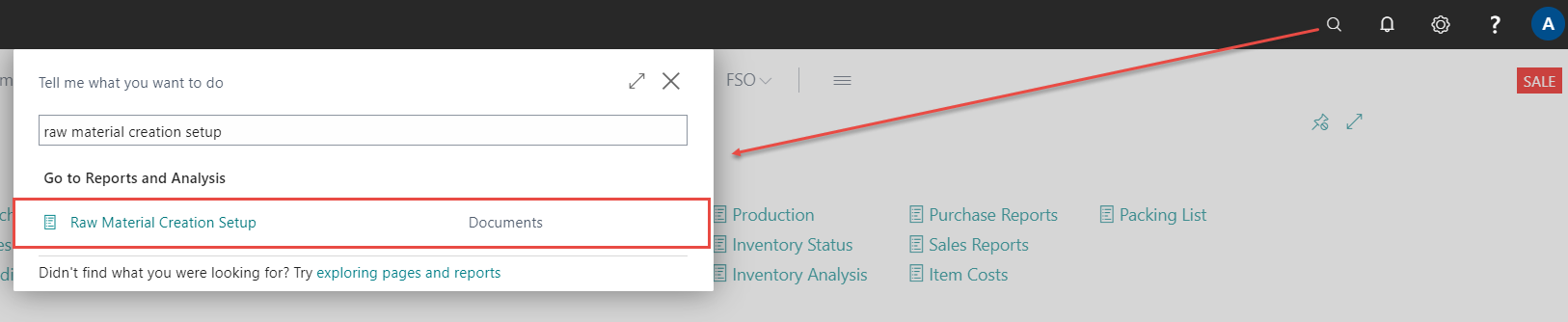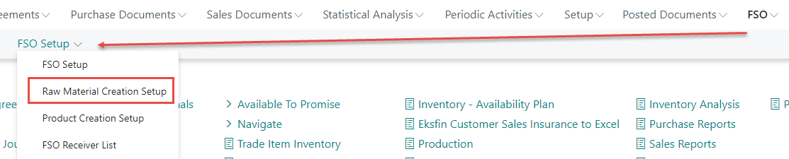 Start by clicking on FSO > FSO Setup > Raw Material Creation Setup from the role center.