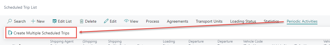 From the Scheduled Trip List click on Periodic Activities > Create Multiple Scheduled Trips.