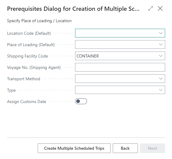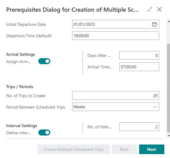 This action opens up a Wizard. The wizard is programmed to assists users through the creation of multiple trips with a step by step guide.