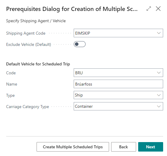 In the third step, more optional elements can be specified for further support to the management on scheduled trips to be created.
