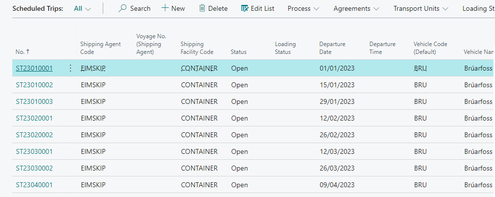 It is possible to use the Create Multiple Scheduled Trips action to pre-create scheduled trip for a designated shipping agent.