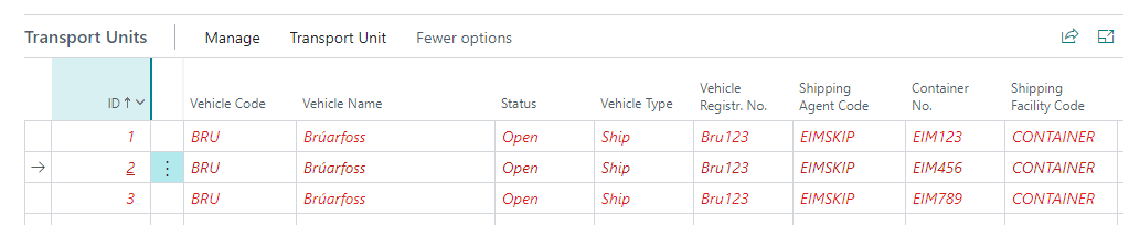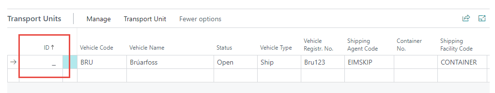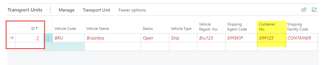 The ID column in the Transport Units lines is a unique identifier for the connected transport unit.