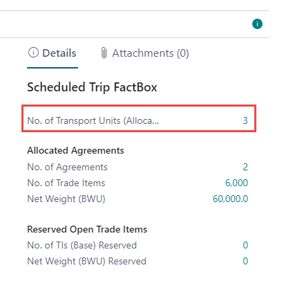 When released the lines turn black and the FactBox is updated with number of allocated transport units (in this example three containers have been allocated to the scheduled trip).