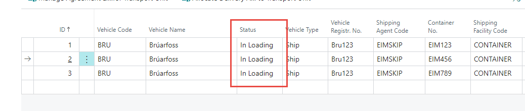 The status of the Transport Units will automatically become In loading when the Trade Items have been reserved.
