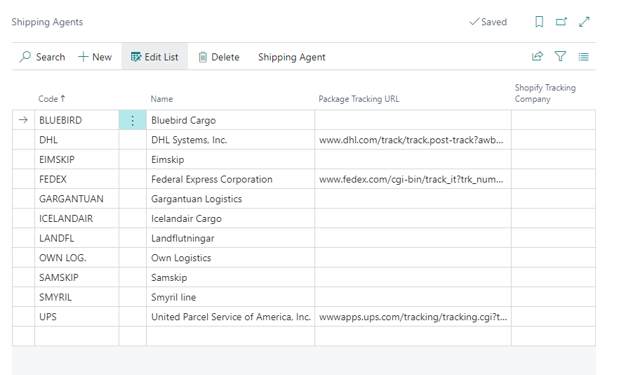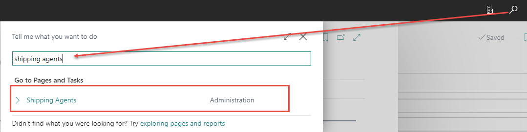Go to the search bar and type Shipping Agents, and then choose the related link.