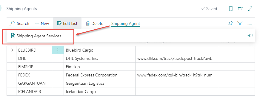 Next, choose the Shipping Agent Services action for each line (shipping agent).