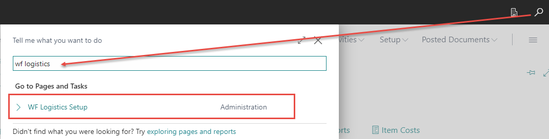 To activate the Logistics module go to the search bar and type WF Logistics Setup.