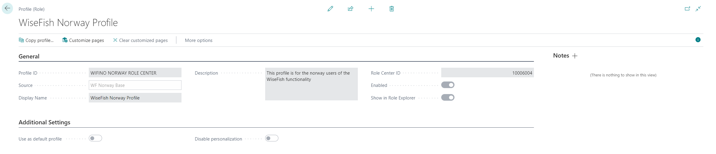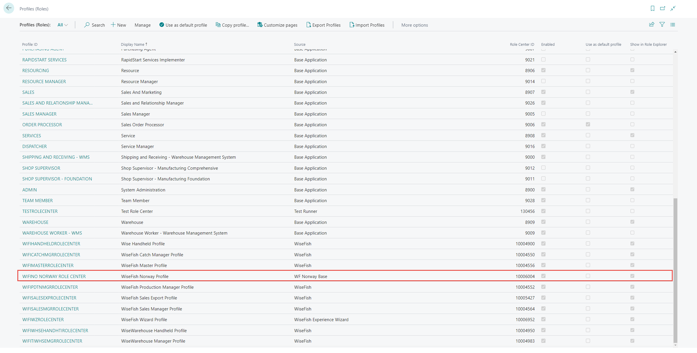 The WiseFish Norway Profile gives the user access to the WiseFish Norwegian customizations. The customizations are split into five modules. The Norway Base module is a prerequisite for the other four modules.