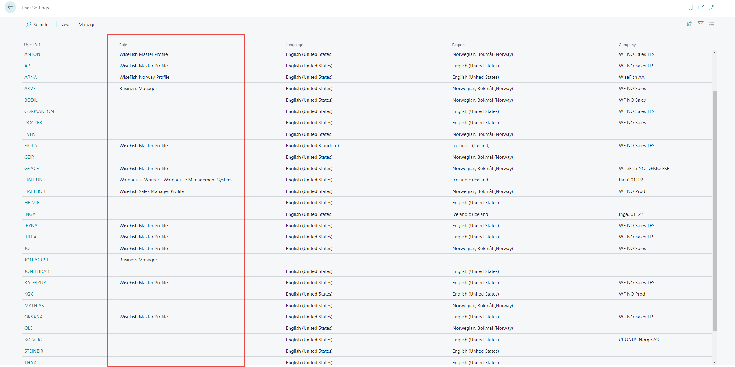 Make sure to set the role to WiseFish Norway Profile. Go to the settings icon and click on My Settings.