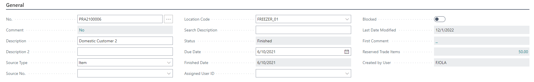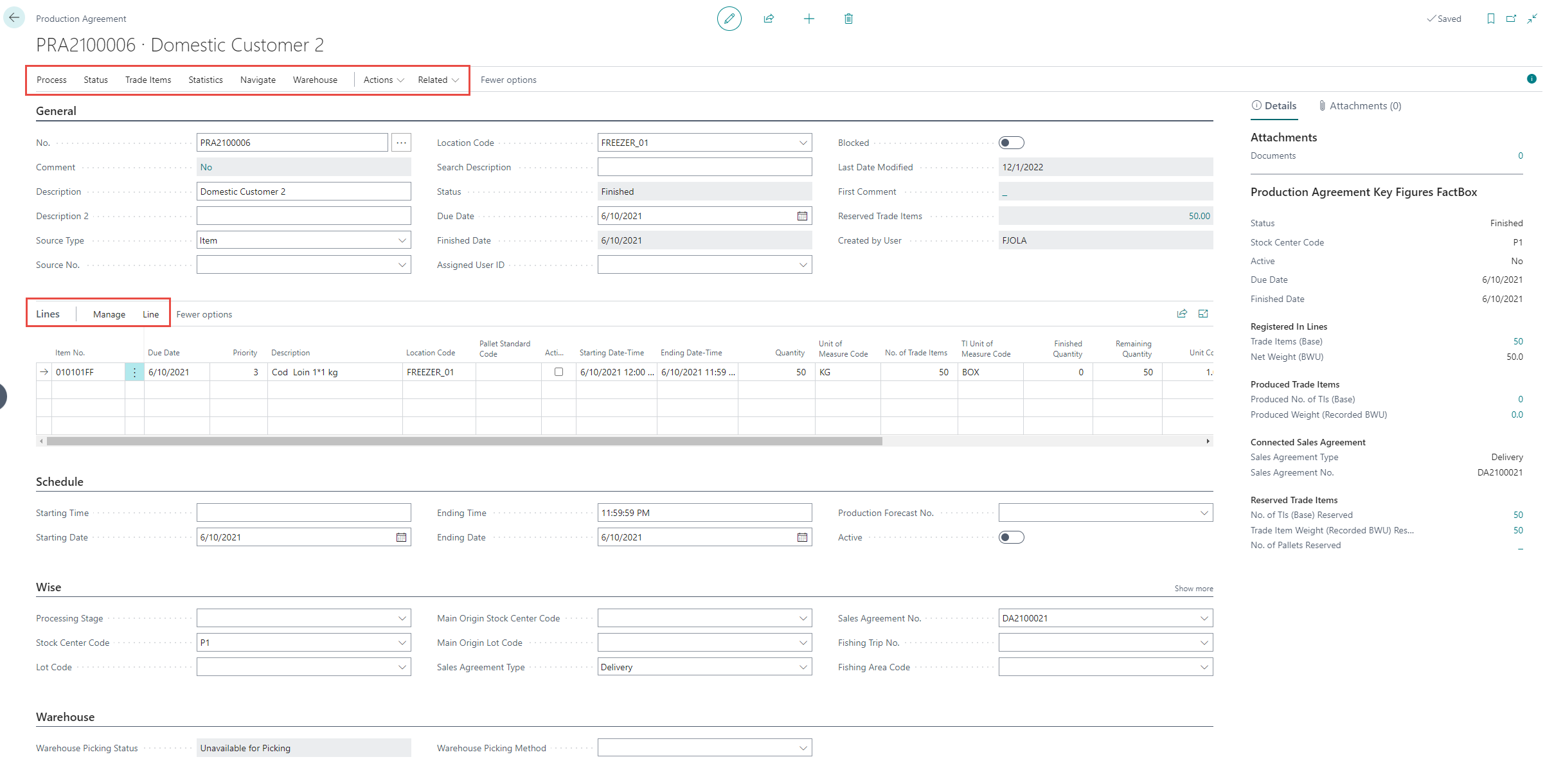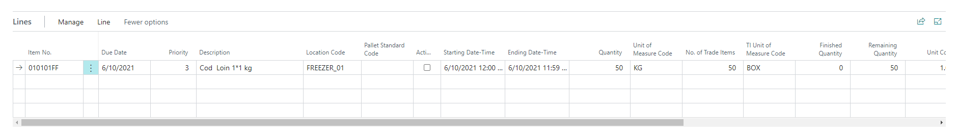 Information about the products (Trade Items) that are being produced are listed here. The Production Agreement lines can have different statuses.