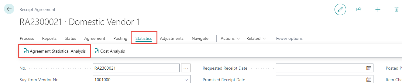 To view the statistical analysis for a Receipt Agreement, click Statistics > Agreement Statistical Analysis.