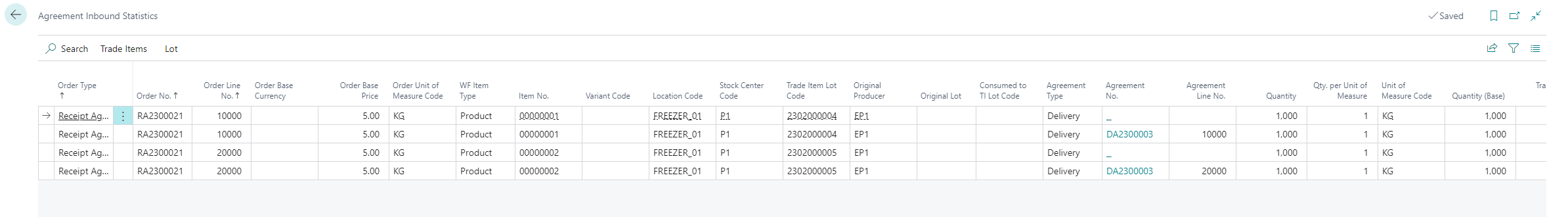 The Agreement Statistical Analysis shows the inbound statistics. It displays additional information that is not found in the Receipt Agreement itself.