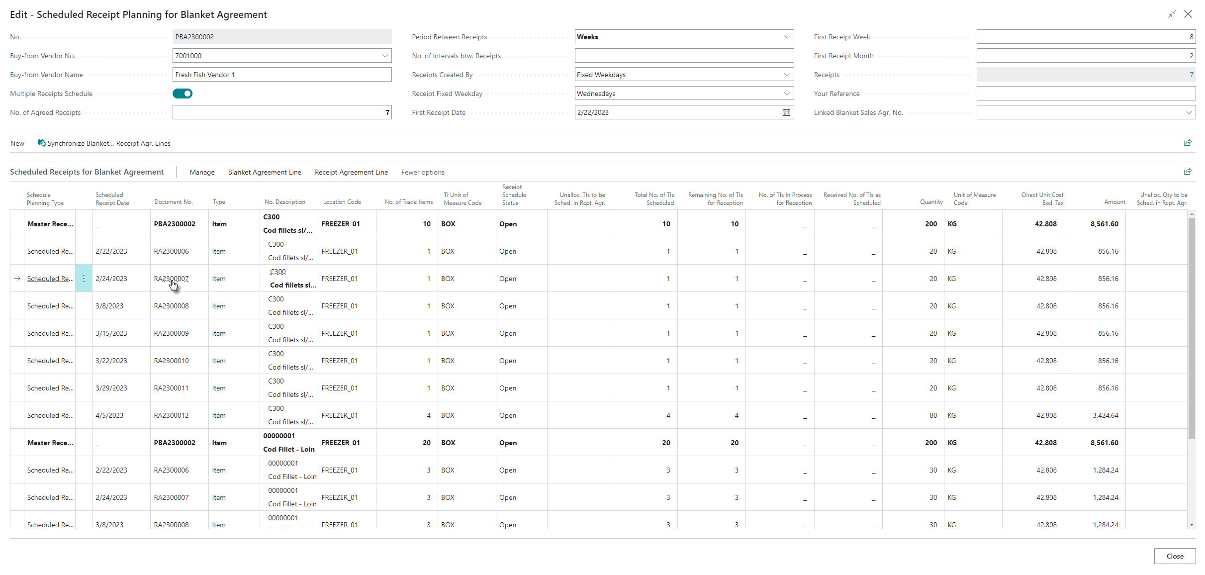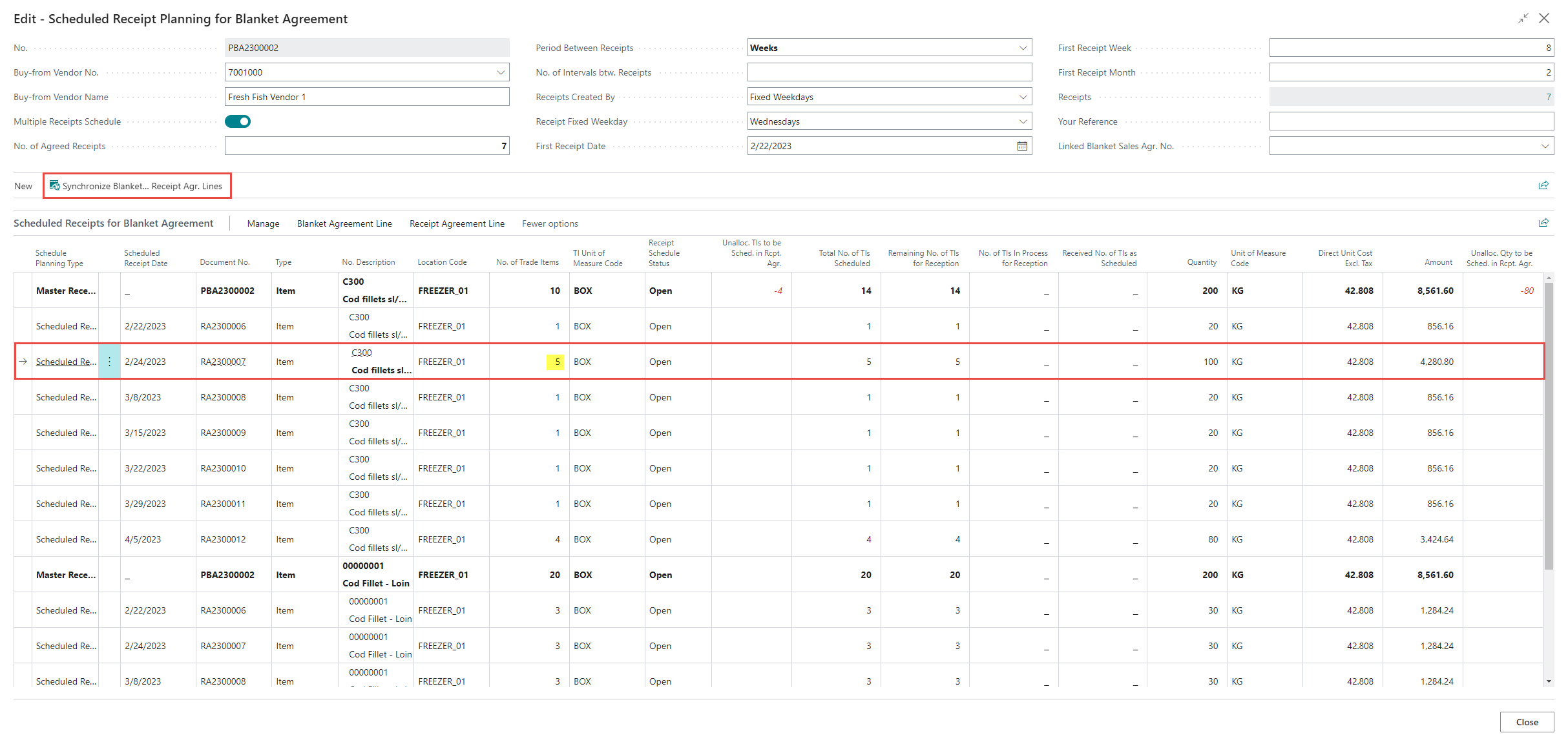 Then click Synchronize Blanket Agr. Lines to Scheduled Receipt Agr. Lines. This updates the receipt agreement(s) in question and updates the related lines in the blanket purchase agreement with regards to the total quantity altered.