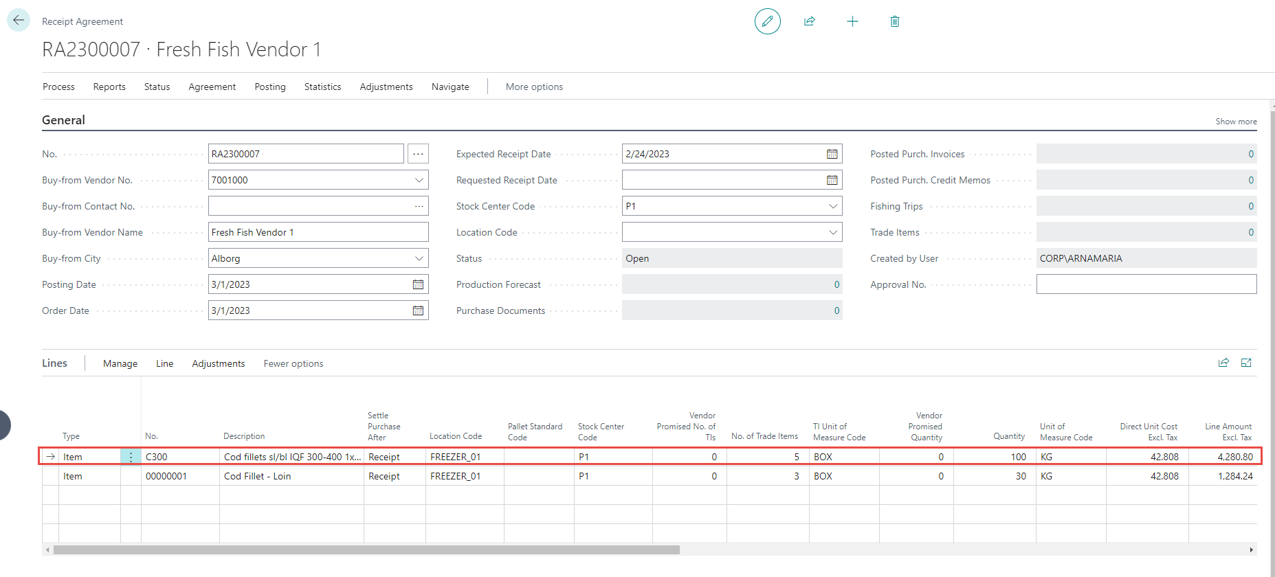 One way is to change the quantity in the receipt agreement(s) in question. Click on the receipt agreement.