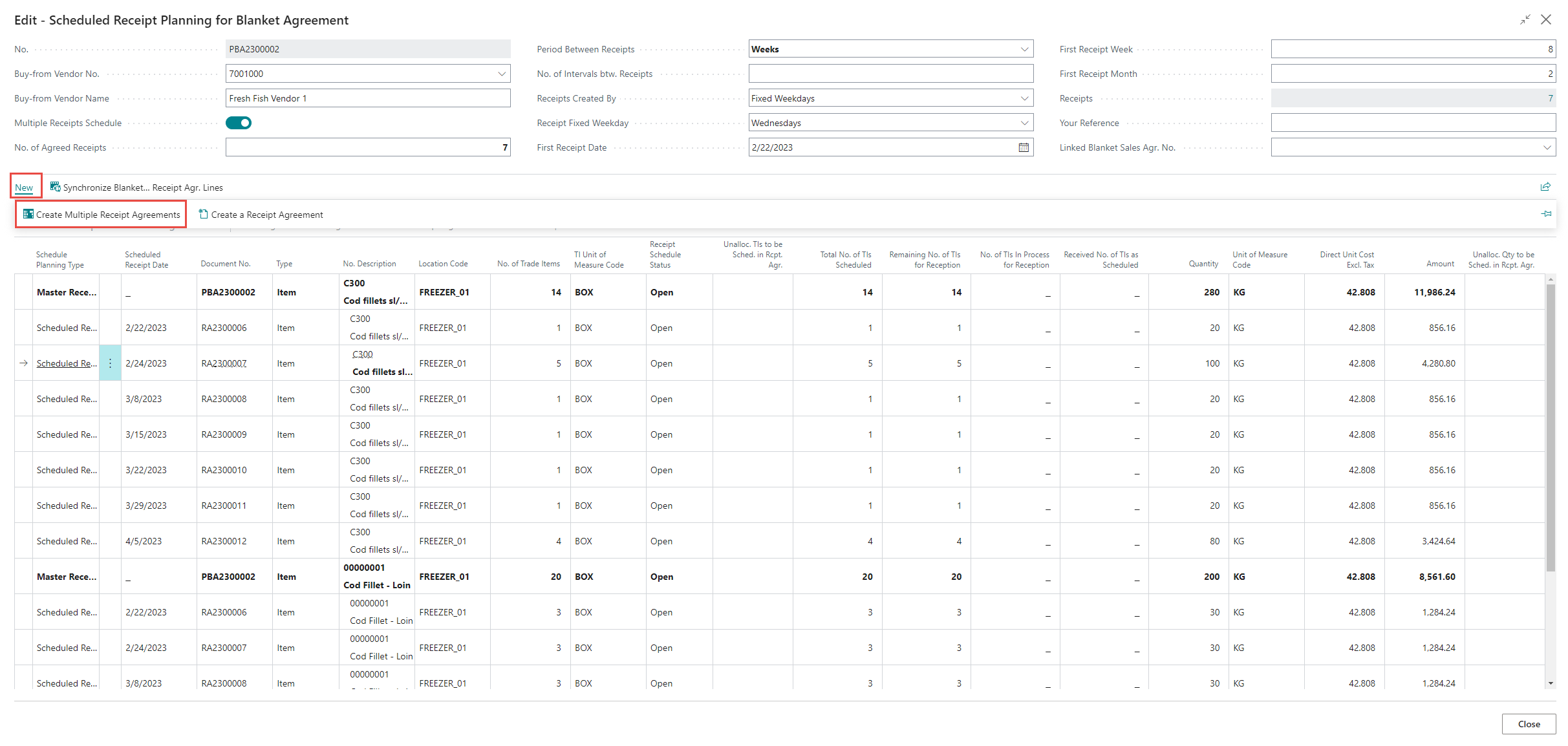 Method 2: Create Multiple Receipt Agreements