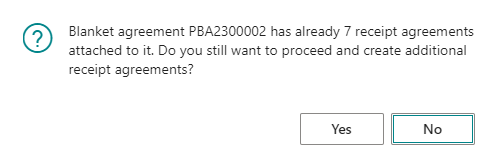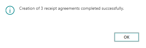 The user then confirms that additional receipt agreements are to be created.