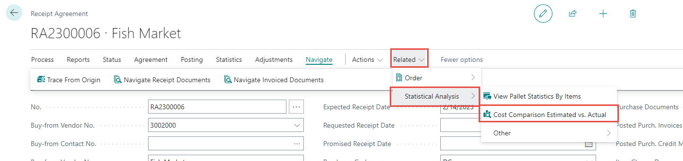 The cost comparison feature is used in comparing the Estimated Additional Cost versus the Actual Additional Costs. The estimated costs are not posted whereas the actual costs are. Click Related > Statistical Analysis > Cost Comparison Estimated vs. Actual.