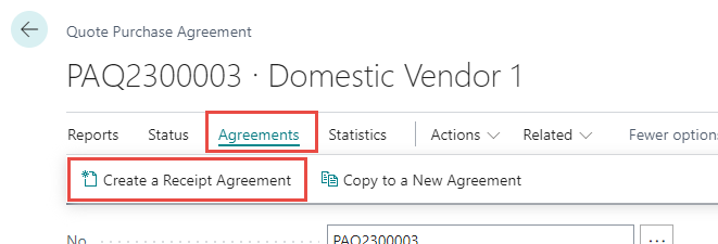 When the quote has been accepted and a purchase must be conduced, a Receipt Agreement is created out of the Quote Purchase Agreement.