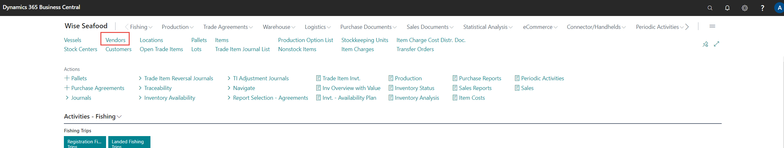 Click on Vendors on the home page. It is also possible to search for it in the search window.