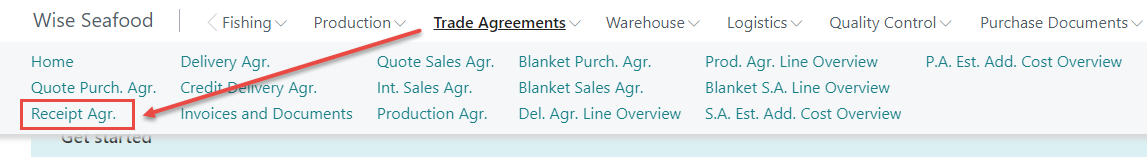 The Receipt Agreement List can be found under Trade Agreements > Receipt Agr. from the role center.